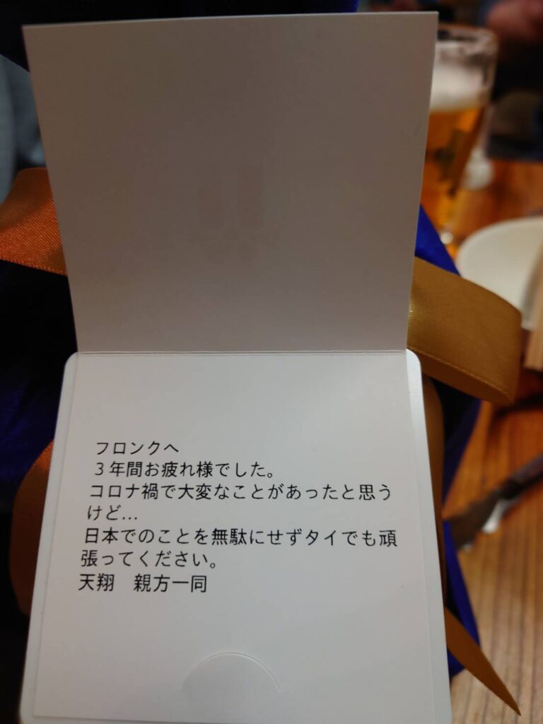 フロンクさんがタイの国でこれからも頑張っていただければと思います。